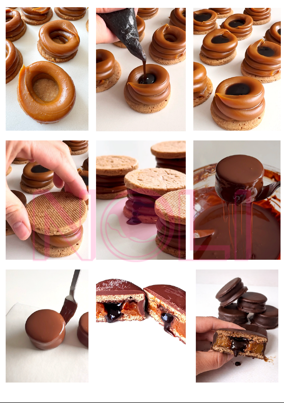 15 rellenos estables, ricos y versátiles para crear alfajores con identidad. Ganaches, geles y compotás con ingredientes como mortiño, Malbec, Baileys, Tiramisú y más. PDF con fotos paso a paso — de la cocina de Noelia Romina Rueda, 🥇 World Alfajor Championship 2025.